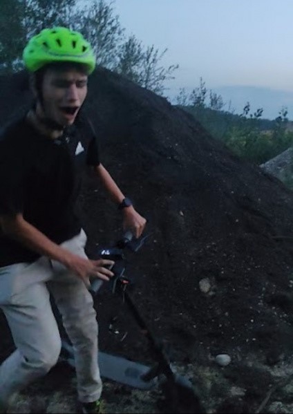 Daraufhin wagte er sich in einem Rausch aus Adrenalin, die Risiken vollständig ignorierend, auf einem eigens errichteten Bikepark mit seinem E-Scooter. Glücklicherweise entging er allen Verletzungen.